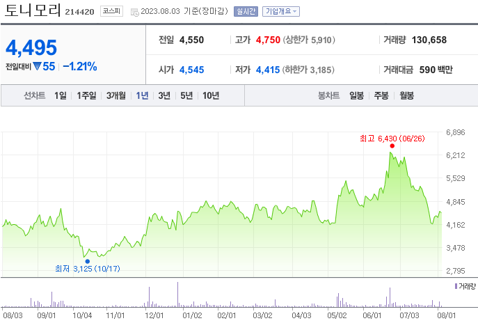 토니모리 주가 분석