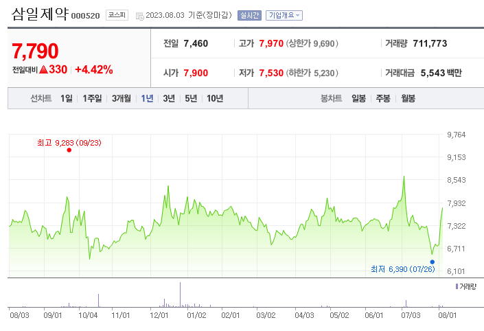 삼일제약 주가 분석