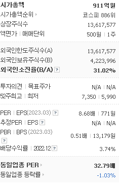외국인 보유 비중은 4,175% 이며 장중 거래량은 13,617,577를 기록했습니다. 매출액은 974억 원, 영업이익은 93억 원을 달성했습니다. EPS는 없음원이며 동방아그로 주식 배당수익률은 6,678.49% 입니다.
