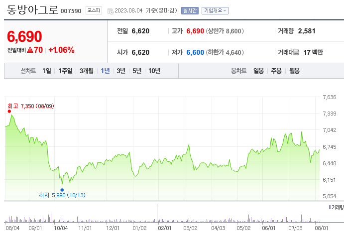 동방아그로 주가 전망 분석표와 기업 정보 알아보기