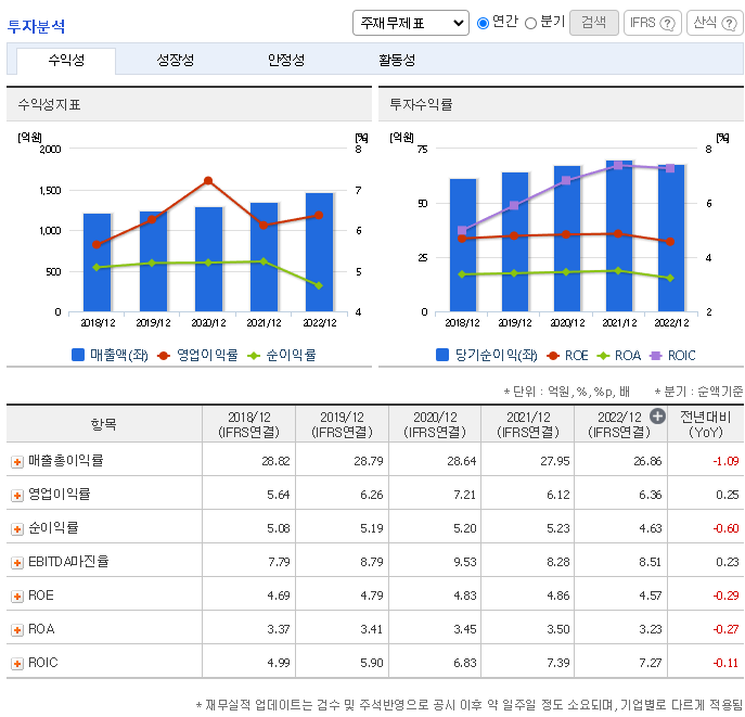 -2023년 3월 전년동기 대비 연결기준 매출액은 23.8% 증가, 영업이익은 28.9% 증가, 당기순이익은 29.5% 증가. 주력 제품의 판가 인상으로 외형 상승세이며, 주요 원재료가의 안정과 고정비 비중 하락한 영향으로 영업수익성 또한 증가한 모습. 기술연구소 신축을 통해 GLP설비를 완비하고, 사용이 편리한 최신의 선호제형 및 다양한 혼합제 등 고부가가치 제품, 다기능 친환경 비료로 사업을 다각화 함.