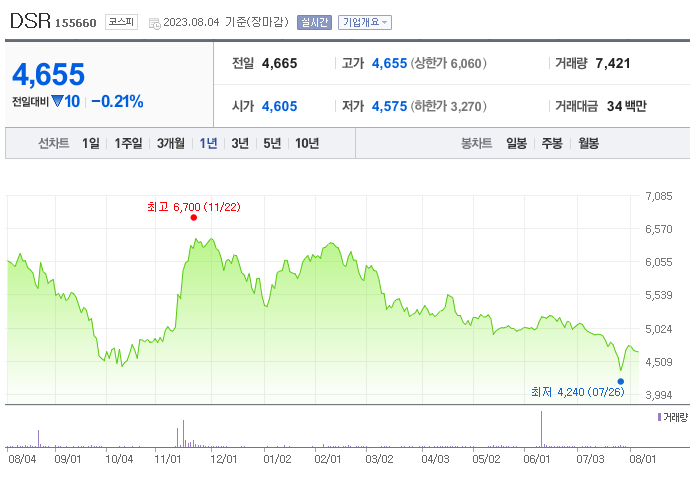 DSR 주가 전망 상태 시장 흐름 분석