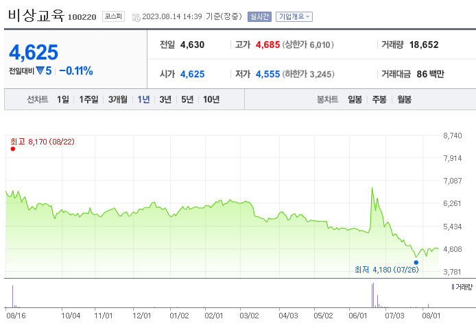 비상교육 주가 분석