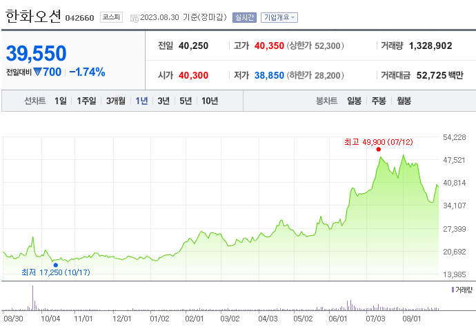 이 글에서는 한화오션 주가 전망과 목표 주가, 기업 정보에 대해서 설명합니다. 주식 시장에서 중요한 것은 미래의 기업 가치를 예측하고 선제적으로 움직이는 것입니다. 투자할 종목을 고르기 전에 현재 기업의 현황과 데이터를 확인하는 것이 필요합니다. 한화오션 주식의 주요 현황과 투자 정보를 확인하시고 주식 투자에 도움을 줄 자료들을 모아 두었으니 투자에 도움을 받으시길 바랍니다.