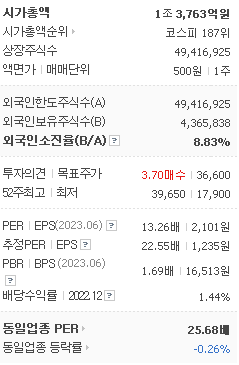 외국인 보유 비중은 374,503% 이며 장중 거래량은 49,416,925를 기록했습니다. 매출액은 4,375억 원, 영업이익은 2,325억 원을 달성했습니다. EPS는 1,235원이며 대덕전자 주식 배당수익률은 2.12% 입니다.