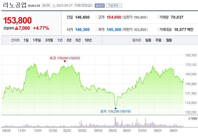 리노공업 주가 분석