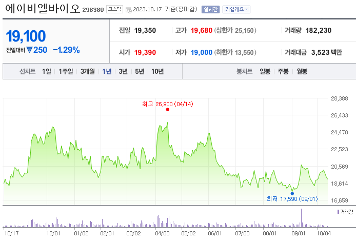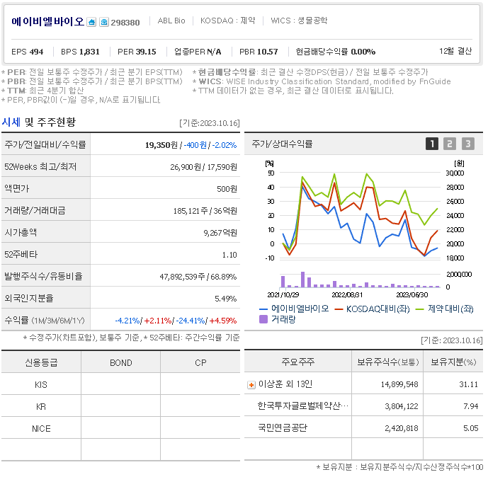 이 글에서는 에이비엘바이오 주가 전망과 목표 주가, 기업 정보에 대해서 설명합니다. 주식 거래에서 중요한 부분은 현재 기업 가치보다는 미래의 기업 가치를 예측하고 먼저 행동하는 것입니다. 투자할 종목을 고르기 전에 현재 기업의 상황과 지표를 살펴보는 것이 중요합니다. 에이비엘바이오 주식의 주요 현황과 투자 정보를 확인하시고 주식 투자에 도움을 줄 자료들을 모아 두었으니 투자에 도움을 받으시길 바랍니다.