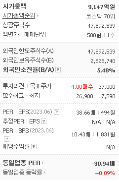 외국인 보유 비중은 185,121% 이며 장중 거래량은 47,892,539를 기록했습니다. 매출액은 490억 원, 영업이익은 9억 원을 달성했습니다. EPS는 42원이며 에이비엘바이오 주식 배당수익률은 0.96% 입니다.