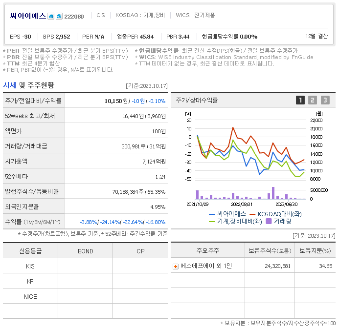 외국인 보유 비중은 300,981% 이며 장중 거래량은 70,188,384를 기록했습니다. 매출액은 529억 원, 영업이익은 78억 원을 달성했습니다. EPS는 없음원이며 씨아이에스 주식 배당수익률은 888,432% 입니다.