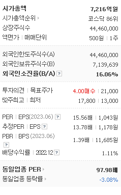 외국인 보유 비중은 200,964% 이며 장중 거래량은 44,460,000를 기록했습니다. 매출액은 3,667억 원, 영업이익은 727억 원을 달성했습니다. EPS는 1,178원이며 동국제약 주식 배당수익률은 1.08% 입니다.